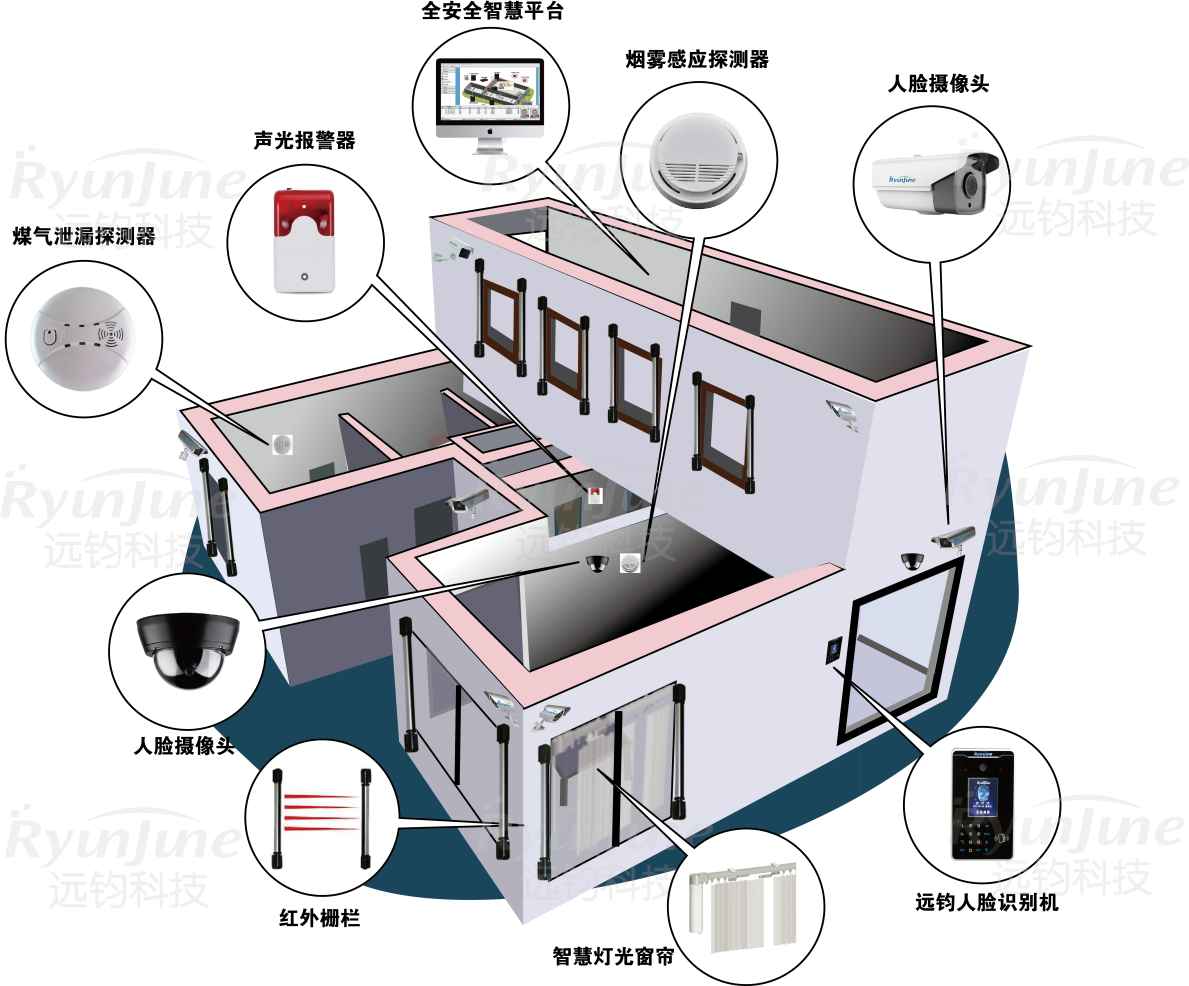 远钧人脸识别系统以其极速识别、高准确率、杜绝伪装和全天侯环境光线等技术特点,通过强大的后台全安全管理平台系统的支撑,把人脸门锁、人脸识别监控系统、智慧灯光窗帘和防盗煤气报警等系统完美结合起来,通过电子地图实时掌控家庭、小区智能安防情况,为智慧安防住宅提供一体化整体解决方案。